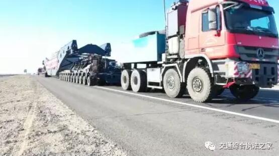 近日,特變電工股份有限公司新疆變壓器廠生產(chǎn)的目前最大、最重的變壓器由大件汽車運(yùn)輸有限責(zé)任公司裝車啟運(yùn)。該大件運(yùn)輸車輛總長115米,寬4.9米,高4.98米,車貨總重量達(dá)610噸,共28軸,采用2臺(tái)奔馳8x8、2臺(tái)3縱列12軸線的液壓平板車、1臺(tái)鉗夾式大型框架組成。面對(duì)如此艱巨的護(hù)送任務(wù),自治區(qū)路政管理局結(jié)合“不忘初心、牢記使命”主題教育,主動(dòng)靠前,多措并舉全力保障超大型變壓器安全運(yùn)輸。