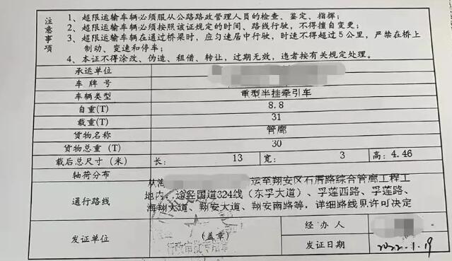 有超限運輸車輛通行證照樣查處 大件運輸車需按規(guī)定行駛