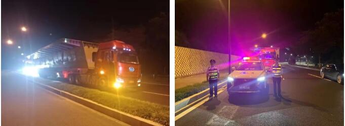 項目負責人沈曉杰說:“國道上社會車輛較多,運輸路線環(huán)境十分復雜,加上夜間行駛視線不佳,運輸難度及安全風險十分大。這個項目又比較急,鋼箱梁必須按時運到。區(qū)交通運輸行政執(zhí)法隊為我們安全護送,既保證了鋼箱梁安全運到,也保證了項目的正常運行,真的非常感謝。”