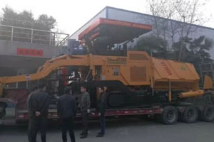 天域重工委派淳遠(yuǎn)物流將45臺(tái)攤鋪機(jī)運(yùn)輸?shù)胶幽?,最終順利交接給客戶(hù)