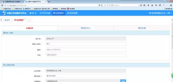 信息維護(hù)包括:企業(yè)信息,常用經(jīng)辦人,常用車輛三個(gè)模塊;