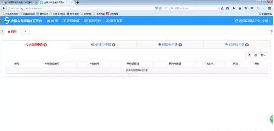 1)、企業(yè)用戶登錄首頁(yè)面,可查看處于不同狀態(tài)的申請(qǐng);