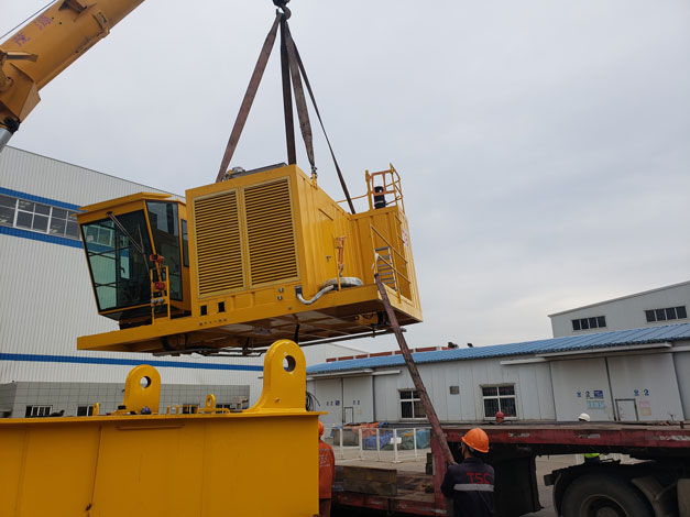2018年5月21日凌晨5:30分左右,9輛貨車從青島市黃島區(qū)途經(jīng)青蘭高速發(fā)往青島城陽區(qū)天時海洋石油裝備有限公司,此次淳遠(yuǎn)服務(wù)的項目是“保稅物流一日游”業(yè)務(wù)。大約7點(diǎn)30分,貨車依次駛?cè)胩鞎r海洋廠區(qū)內(nèi),此次運(yùn)輸?shù)呢浳锟傊貫?69噸的設(shè)備機(jī)組,上午8時許,操作正式開始。